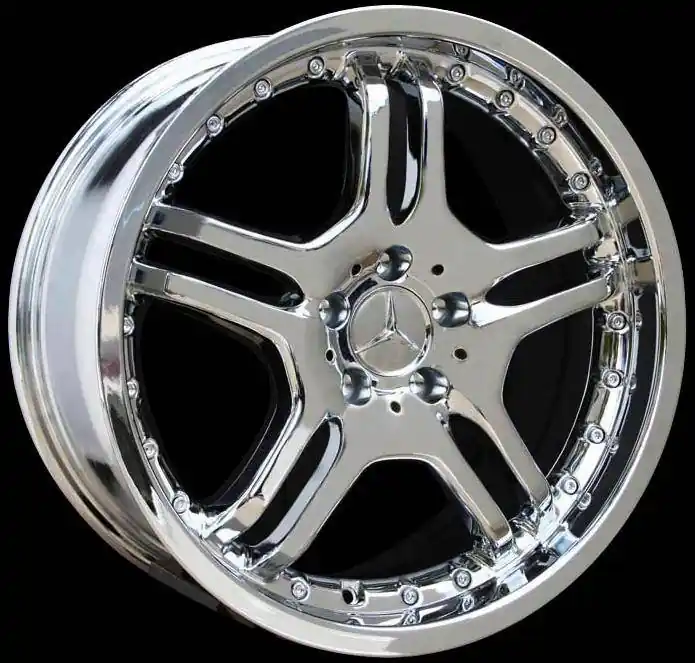 BRAND NEW AMG Style 5 Split Mercedes 4 Wheel Set. Wheels come in a non-staggered setup (17×8 all around). These are triple plated chrome finish with chrome rivets. Center caps are included.