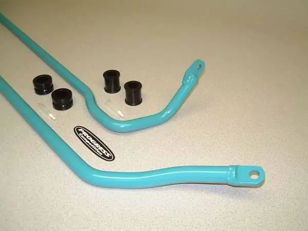 Progress Suspension front anti-roll bars dramatically improve handling. How? They minimize the traction-robbing body �lean� that rolls part of the outside tires off the pavement. Our Sport-tuned Anti-roll bars replace skinny OEM bars and rubber bushings with larger diameter (stiffer) alloy steel bars and polyurethane bushings. More roll stiffness means less body �lean�, and the tires stay flatter on the pavement (larger contact patches). The result is more grip and added driver control!