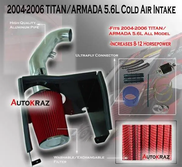 This brand new intake for your Titan/Armada will give you a 8-12HP boost! Get rid of that factory restrictive airbox and let the engine breathe! Installing this Performance Intake on your Titan/Armada will not only increase HP, but fuel economy as well!