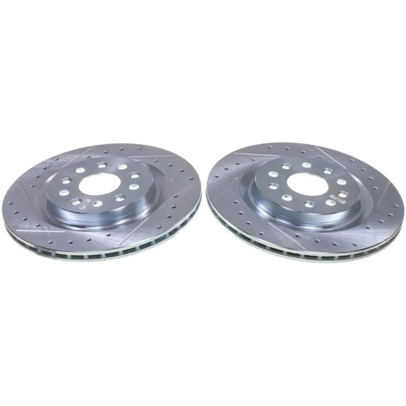 Power Stop drilled and slotted rotors provide a bolt-on upgrade for improved brake cooling and performance. Precision cross-drilled for maximum cooling and maximum performance during extreme conditions; rounded slots sweep away gasses, dust, and moisture to keep a clean friction contact patch on the rotor surface. Silver zinc dichromate plating resists rust and corrosion. With a direct OE fit, there are no special modifications needed.