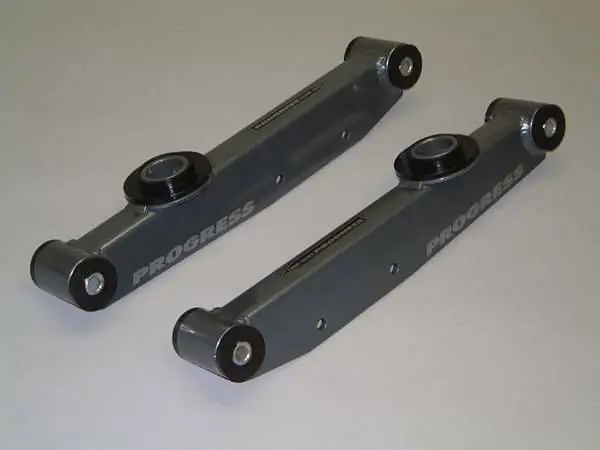 1979-2004 Mustang GT and V6 rear lower control arms. These are recommended for high horsepower, high performance Mustangs to get rid of the sloppy rubber OEM bushings, to eliminate wheel hop, and reduce un-sprung weight.