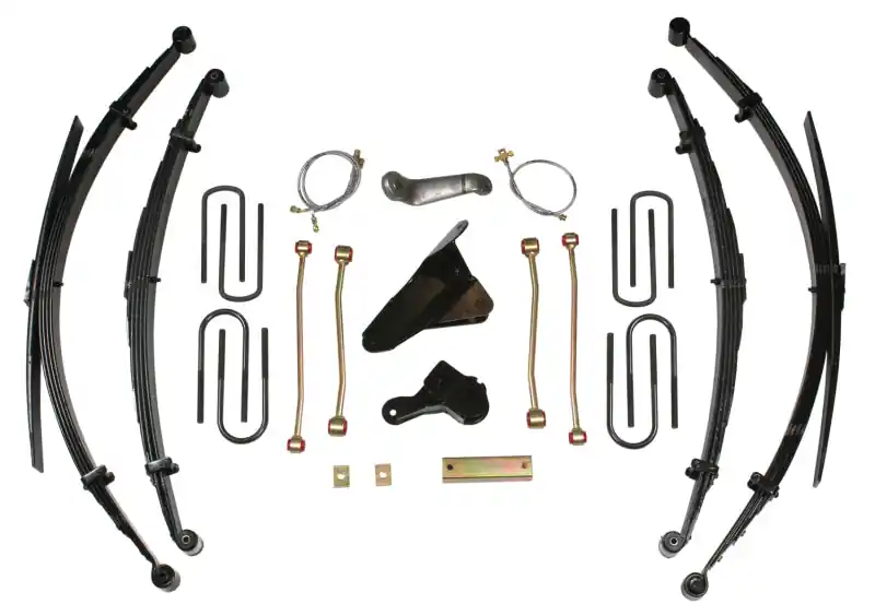 Suspension Lift Kit; 8 in. Lift; Incl Front/Rear Leaf Springs; Track Bar Bracket; U Bolt Kit; Bushings; Sway Bar Links; Pitman Arm; Brake Lines; Vacuum Tubing; Carrier Bearing;